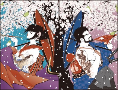 中学では絵を発表する場が出てきました。体育祭でクラスの旗を作るんですが、そこに描くんです。